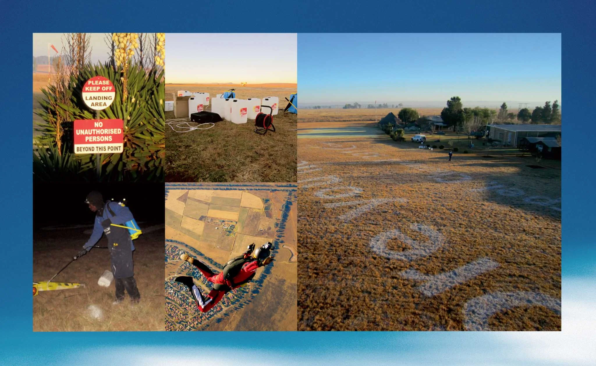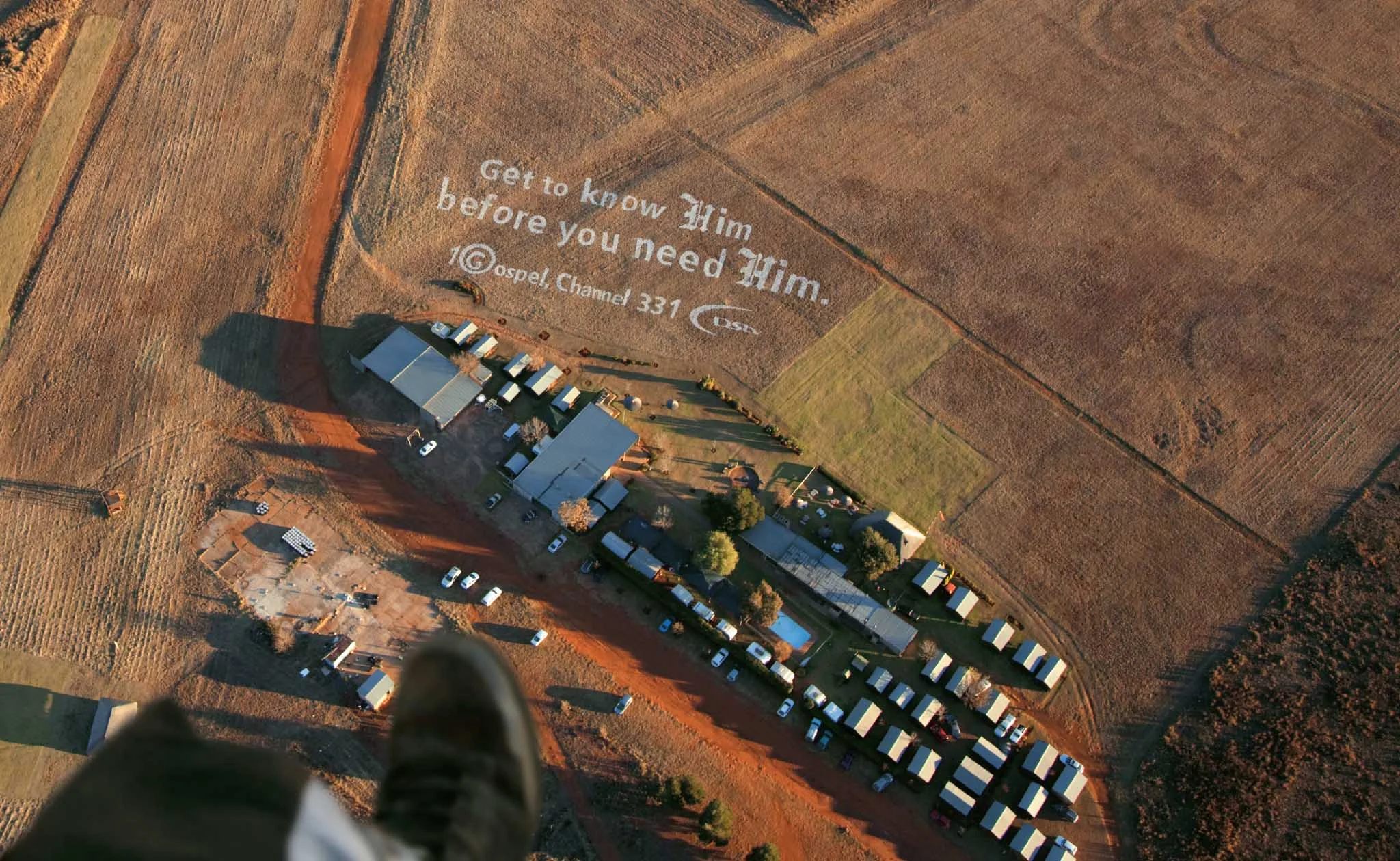 We went to the JHB Skydiving Club and placed our message where someone who might very possibly be “saying their prayers” would see it. Our giant ‘billboard’ was visible from over 2 000 ft and seen by over 4 800 skydivers monthly.