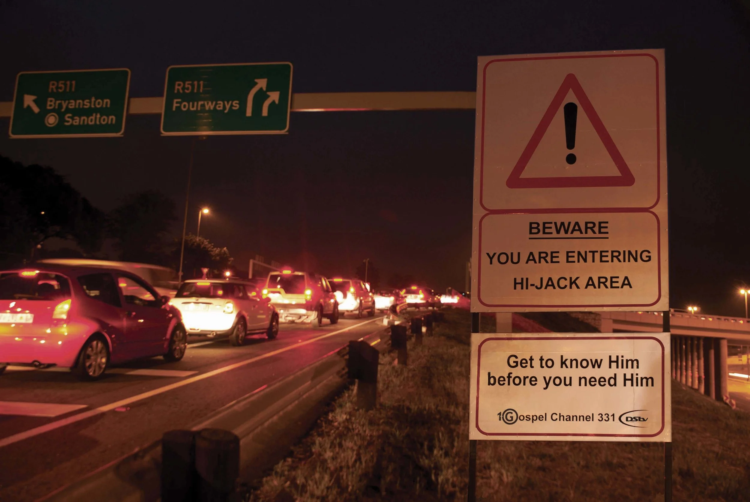 We also placed the message on motorway off-ramps at the base of hijack hot spot signs, as a daily reminder to commuters.