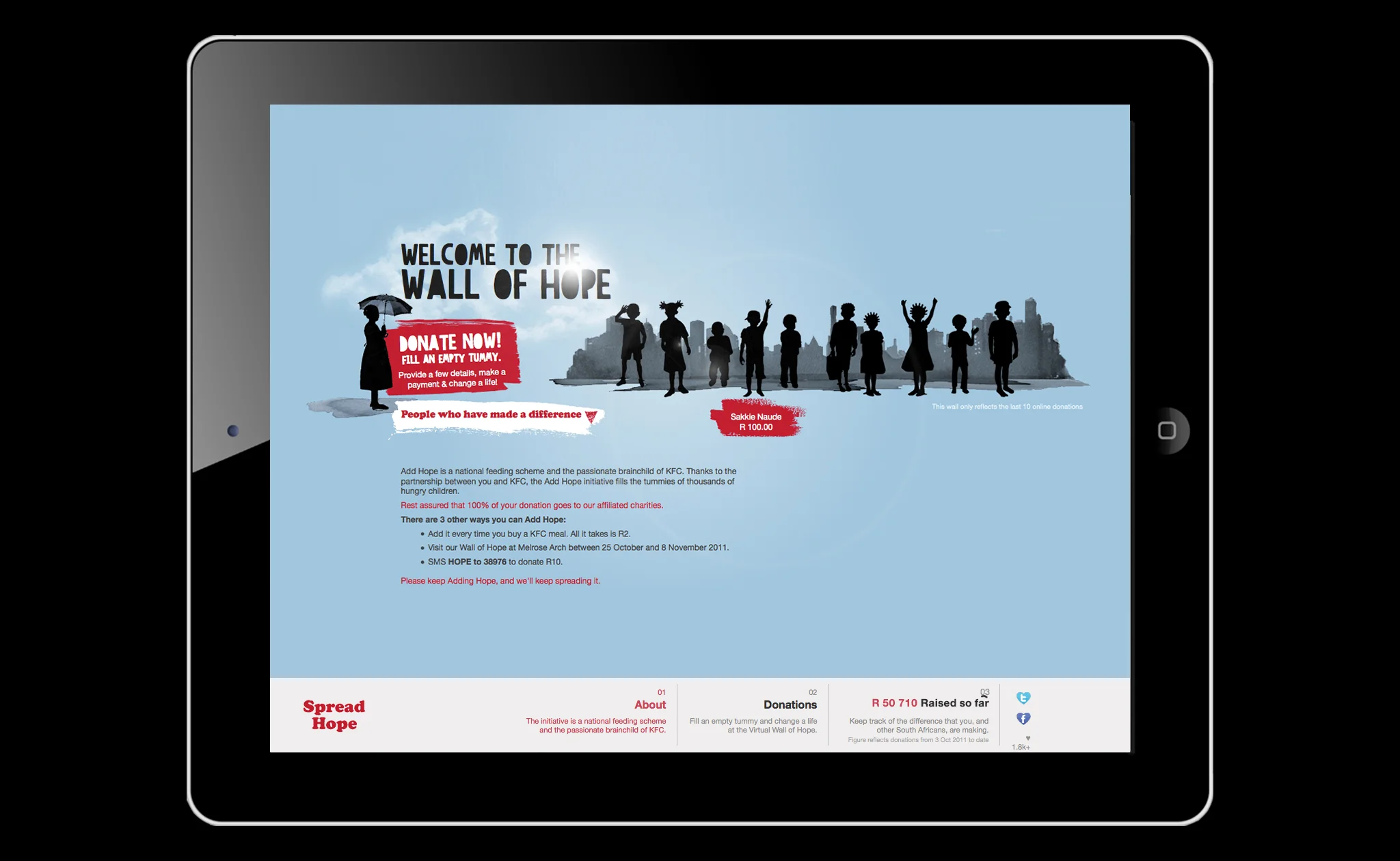 Prism Awards - 2012 Gold “Wall of Hope” Creative Circle - 2013 Ad of the Year “Wall of Hope”Cannes - 2012 Shortlist “Wall of Hope”Loerie Awards - 2012 Silver Alternative Media, Bronze Campaign “Wall of Hope”